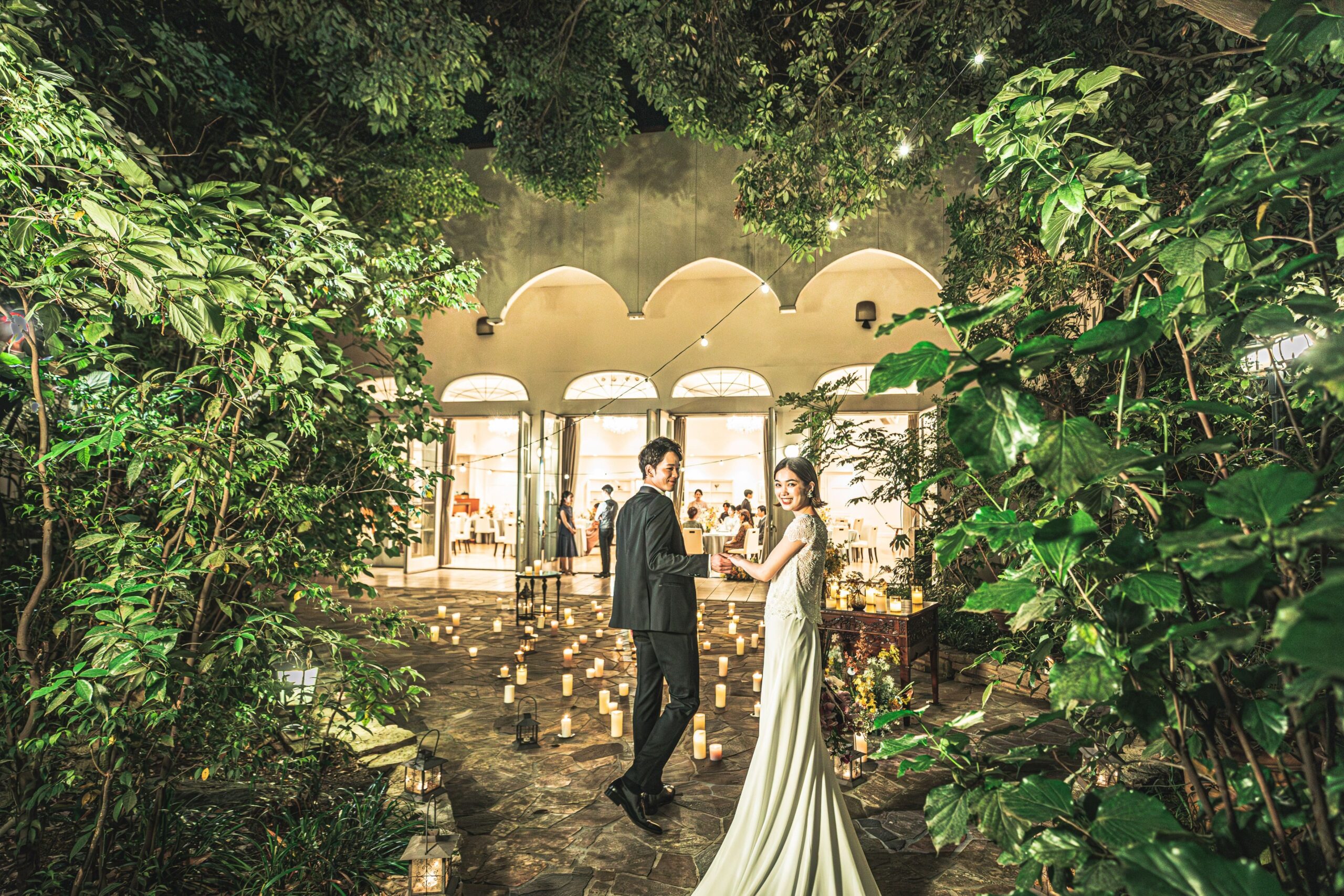 夕暮れから夜へと移り変わる時間帯に行うナイトウェディングは、ロマンチックな雰囲気が魅力の結婚式場スタイルです。