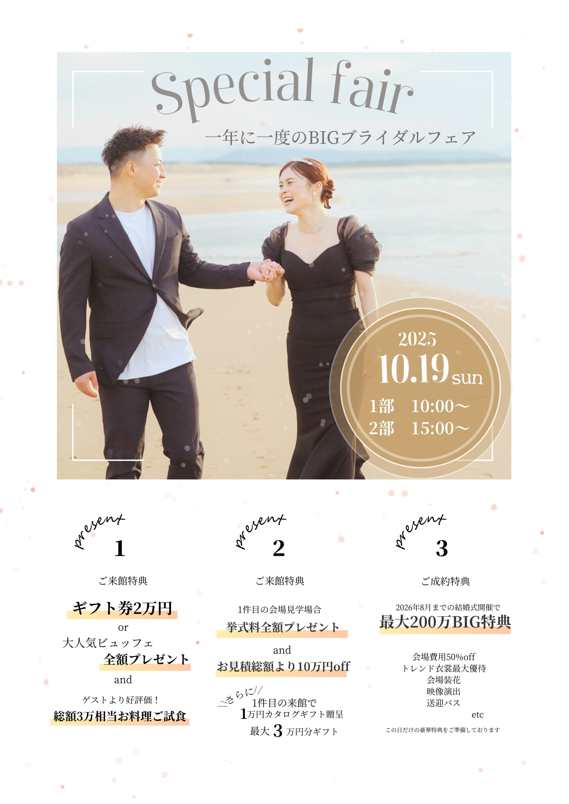 詳しいフェア詳細は⇒BIGフェア10.19 | 【公式】マリーゴールド久留米 福岡県久留米市の結婚式場