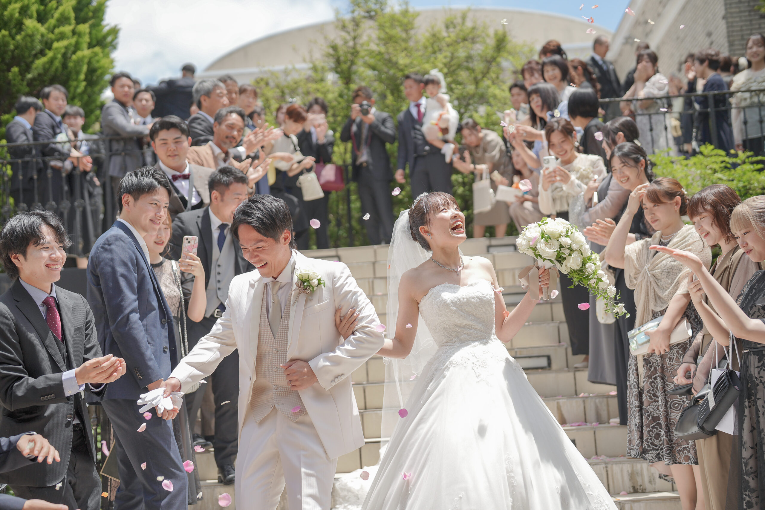 挙式は清楚に、ガーデンではリラックスした雰囲気に。
